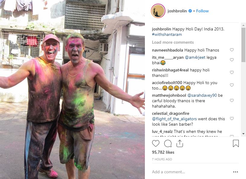 Fans seemed super-excited about Brolin’s Holi throwback photo and couldn’t stop gushing over it. The comment section is full of Thanos references and people wishing the actor on the occasion of Holi.