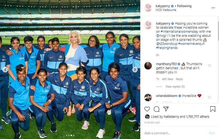 The singer took to her Instagram account to encourage female fans to attend the game. Perry shared a series of pictures that featured herself at the Melbourne Cricket Ground. Pop-star also posed with the Indian Cricket team.