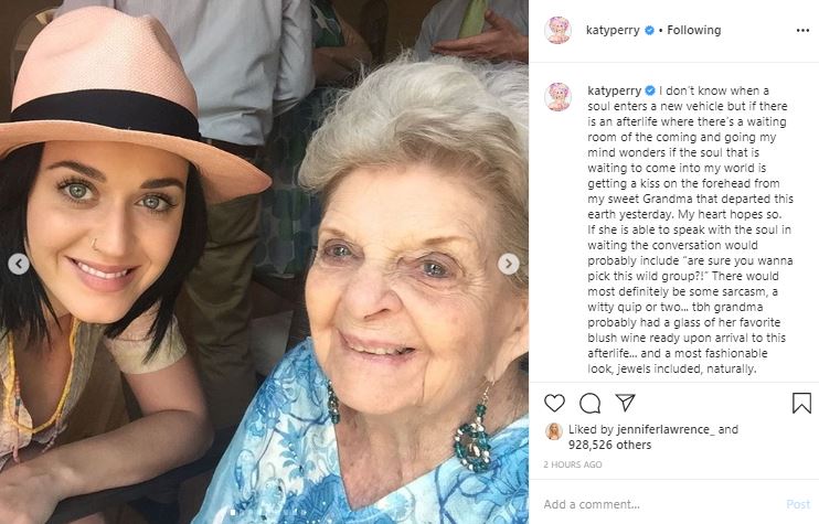 Katy Perry pays tribute to her late grandmother