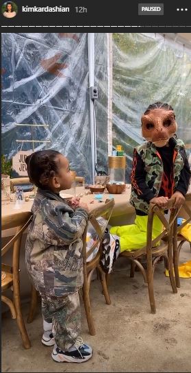In the video, Kardashian was seen calling out Chicago who was scared and began to move away. "Look at Saint as the dinosaur, Don't be scared. It's just your brother with a mask," she said.