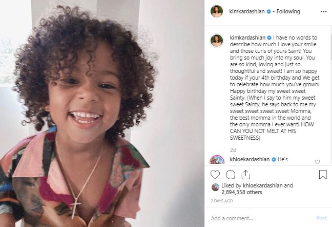 On Thursday, the proud mother shared a sweet tribute to her second eldest son on Instagram in honor of his birthday where she gushed in the heartfelt post. She praised her second-oldest child, "I have no words to describe how much I love your smile and those curls of yours Saint! You bring so much joy into my soul. You are so kind, loving and just so thoughtful and sweet! I am so happy today if your 4th birthday and We get to celebrate how much you've grown!"