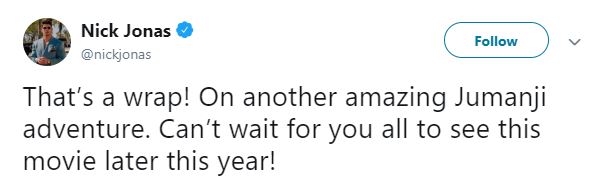 Nick Jonas wraps up shooting for 'Jumanji: Welcome To The Jungle' sequel