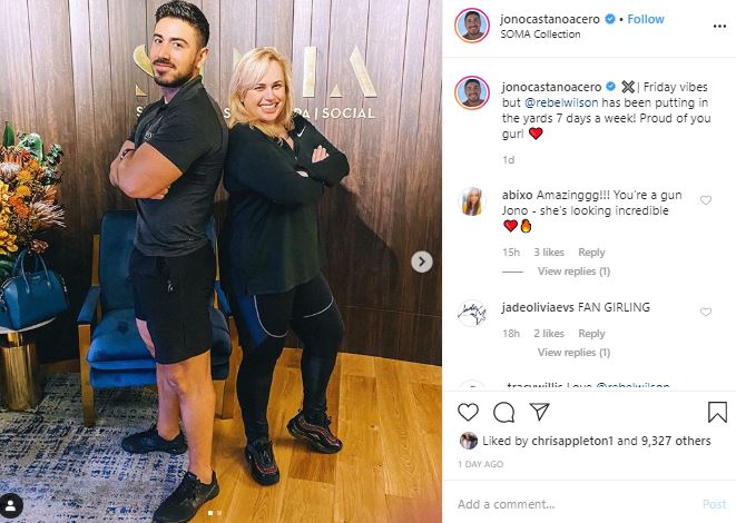 Her trainer, Jono Castano later reposted the video. "Friday vibes but @rebelwilson has been putting in the yards 7 days a week," Castano captioned his post. "Proud of you gurl."