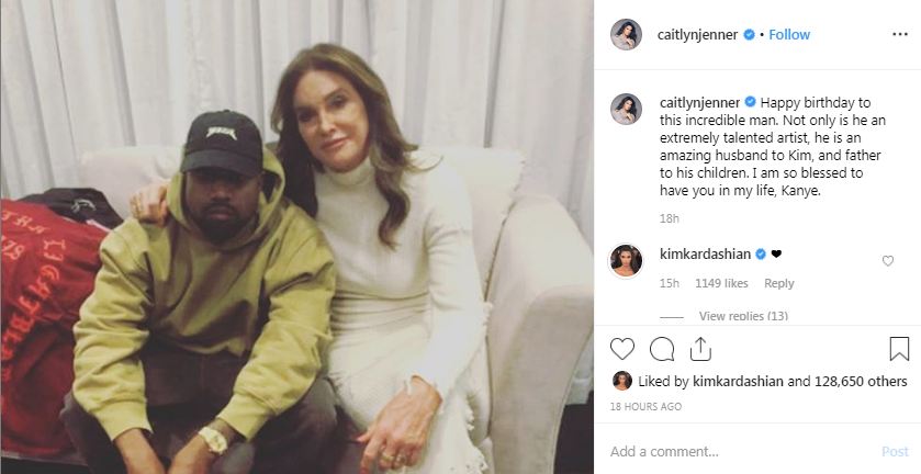 Kris' ex Caitlyn Jenner with whom she shares Kendal and Kylie also wished Kanye on his birthday.