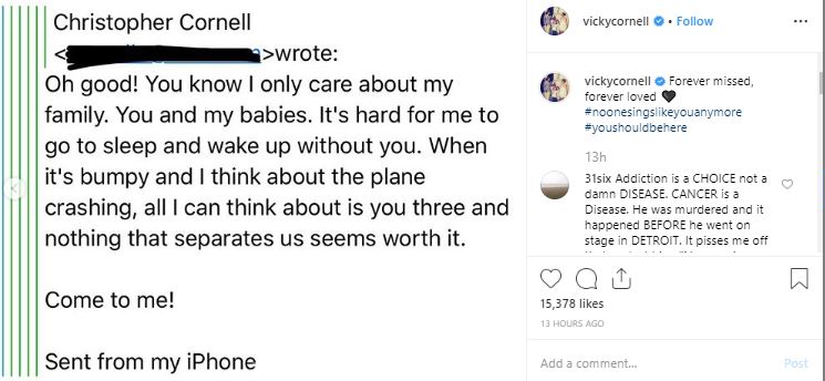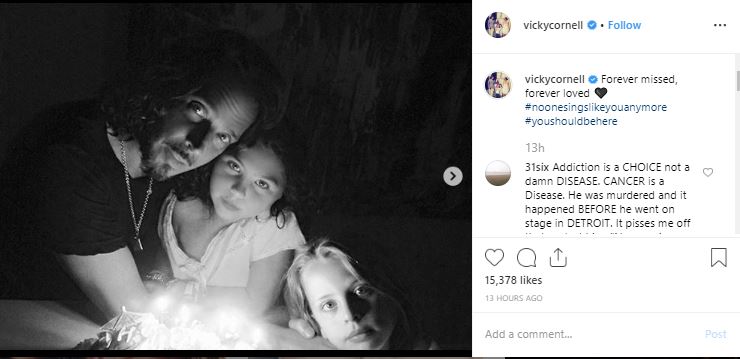 Sharing a monochrome picture of Cornell with two of their daughters, Vicky wrote, "Forever loved, forever missed."