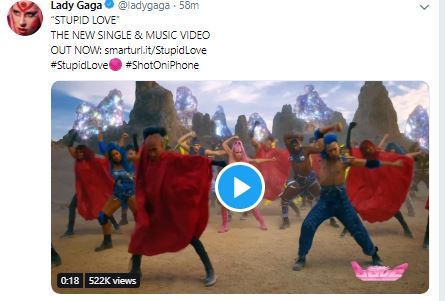 "STUPID LOVE" THE NEW SINGLE & MUSIC VIDEO OUT NOW: http://smarturl.it/StupidLove #StupidLove #ShotOniPhone," her tweet read.