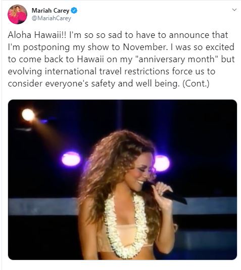 Mariah Carey postpones concert amid Coronavirus outbreak
