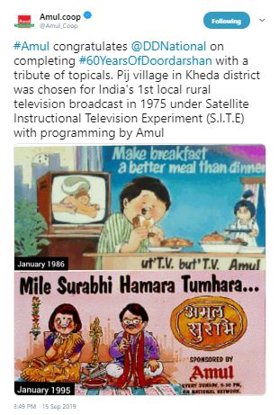 Amul India celebrates Doordarshan's 60 glorious years