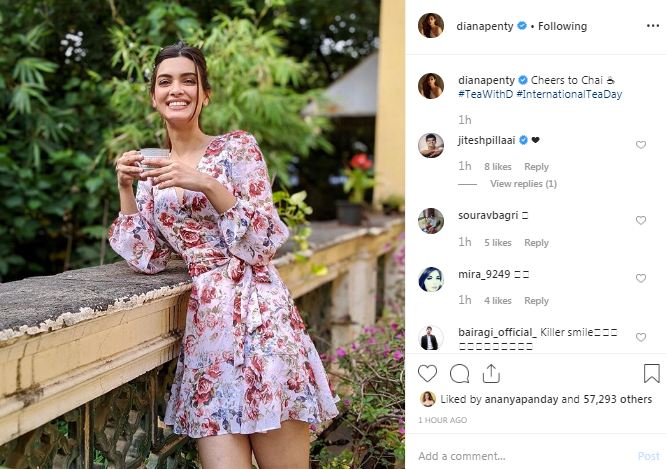 Alternatively, actor Diana Penty posted a smiling picture of herself with a cup of tea in her hand.