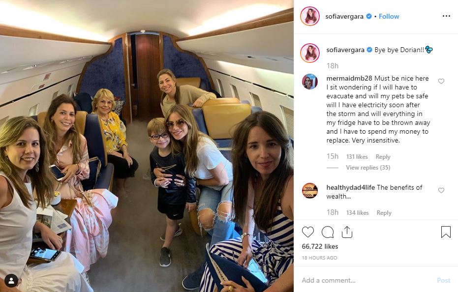 Fans lambaste Sofia Vergara for mentioning Hurricane Dorian in her captions