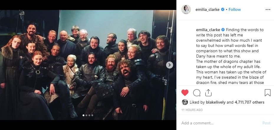 Emilia Clarke, who plays Daenerys Targaryen, shared a series of pictures along with an emotional note, closing the door on this formative experience in her career.