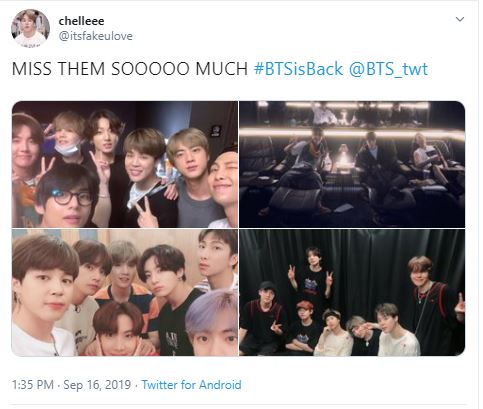"MISS THEM SOOOOO MUCH #BTSisBack," chimed third who shared a series of a collage of the famous band.