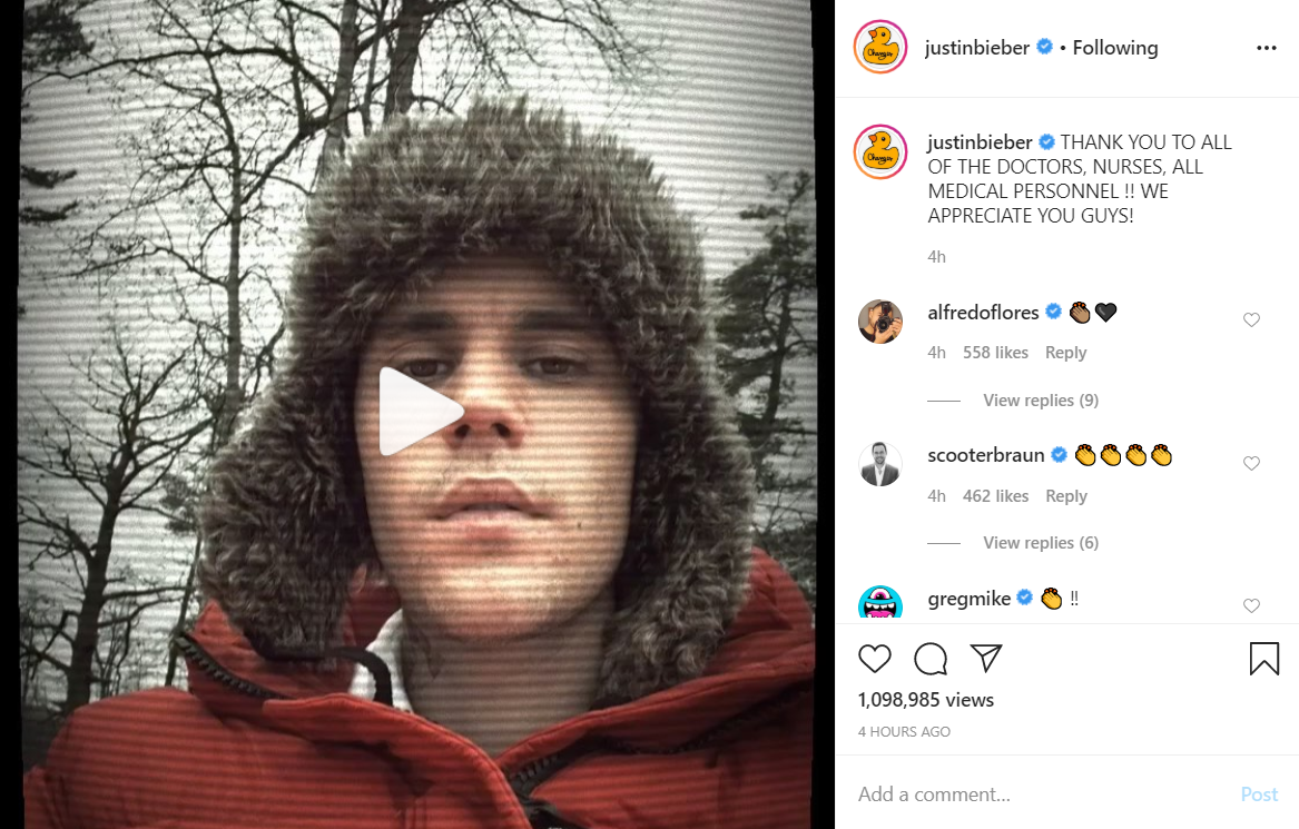 Justin, Hailey thank medical professionals working amidst coronavirus crisis