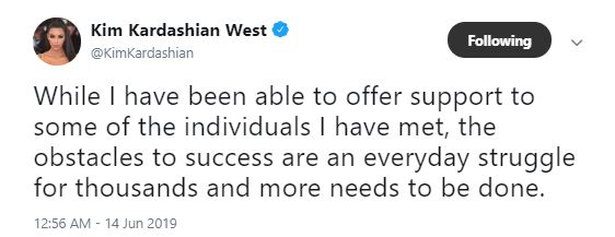 West, an advocate of criminal justice reform issues mentioned in a tweet that she has been able to offer support to some of the individuals but there is more to be done.