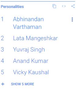 Superseded by much-celebrated Indian Air Force official Abhinandan Varthaman, the veteran singer was the most searched about personality on Google India this year.