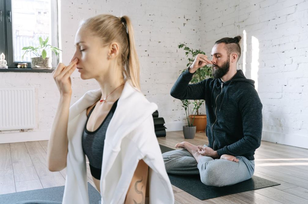 It's a specific type of pranayama, or controlled breathing, in yoga. It involves holding one nostril closed while inhaling, then holding the other nostril closed while exhaling. The process is then reversed and repeated. Doing this can bring better balance to your nervous system and less stress response and activity over time.