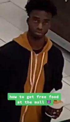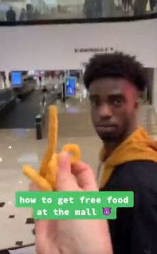 The compilation video was Tweeted with "How to get free food at the mall," written at its bottom.