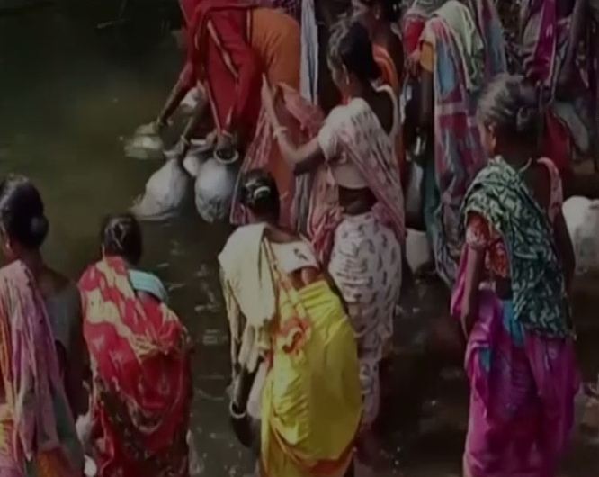 A human right advocate, Shreemathi Majhi, said that the villagers stand in long queues to fetch water from a brook.