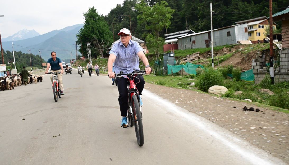 Abdullah reached the venue riding a bicycle in a gesture to promote eco-friendly travel. He posted a picture on X and wrote, "Took advantage of being in Pahalgam to cycle around town for a little while this evening."