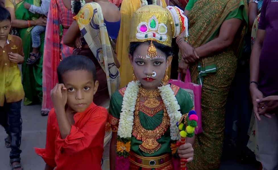 The deities were kept at Villapuram's Pavakkai Mandagapadi during the day and were taken out on a procession in the gold palanquin at 6.30 pmDevotees, especially children dressed up as gods, thronged the temple and took part in the event.