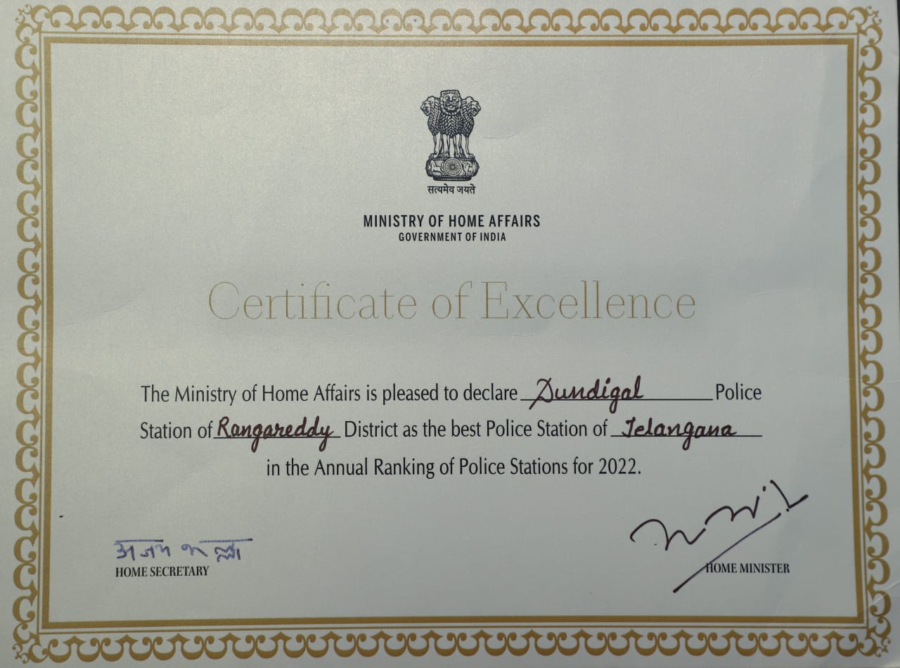 Dundigul Police Station selected as Best PS in Telangana