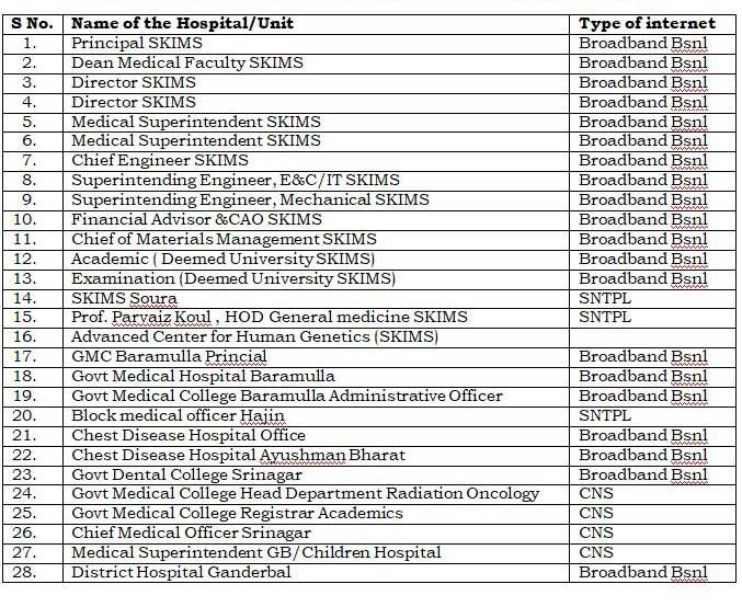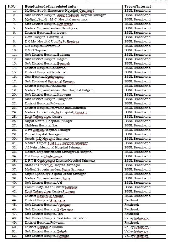 Earlier today, Kashmir Zone Police stated that broadband high-speed internet connectivity has been restored at 80 government hospitals, including the health centers and offices linked to the Department of Health, across the Kashmir valley.