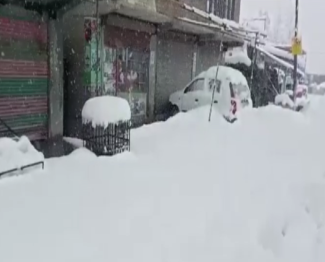 Srinagar (Jammu and Kashmir) [India], January 8 (ANI): The 270 km long Jammu-Srinagar highway remained closed amid heavy snowfall on Saturday, cutting ties with the rest of the world.