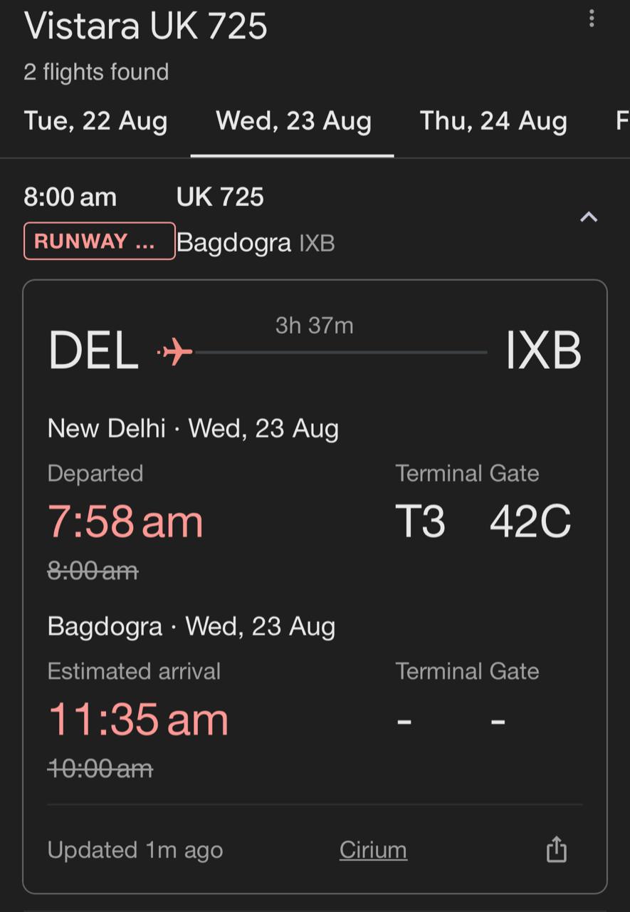Flight UK725 from Delhi to Bagdogra was taking off from the newly inaugurated runway and the Vistara flight from Ahmedabad to Delhi, after landing on a parallel runway, was moving towards the end of the runway.