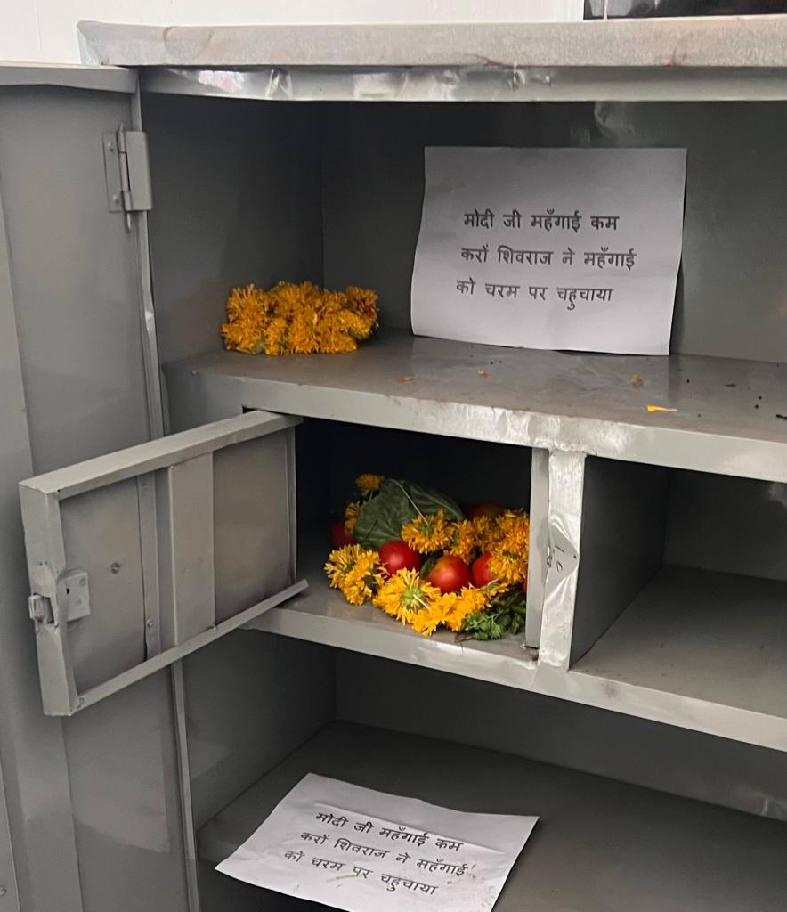 During the protest, the Congress leaders brought the vegetables from the market in a briefcase and kept it in the locker.