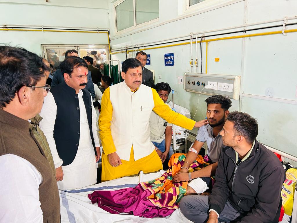 Madhya Pradesh Chief Minister Mohan Yadav on Thursday visited the Guna district hospital and met with people injured in the accident and were undergoing treatment there.