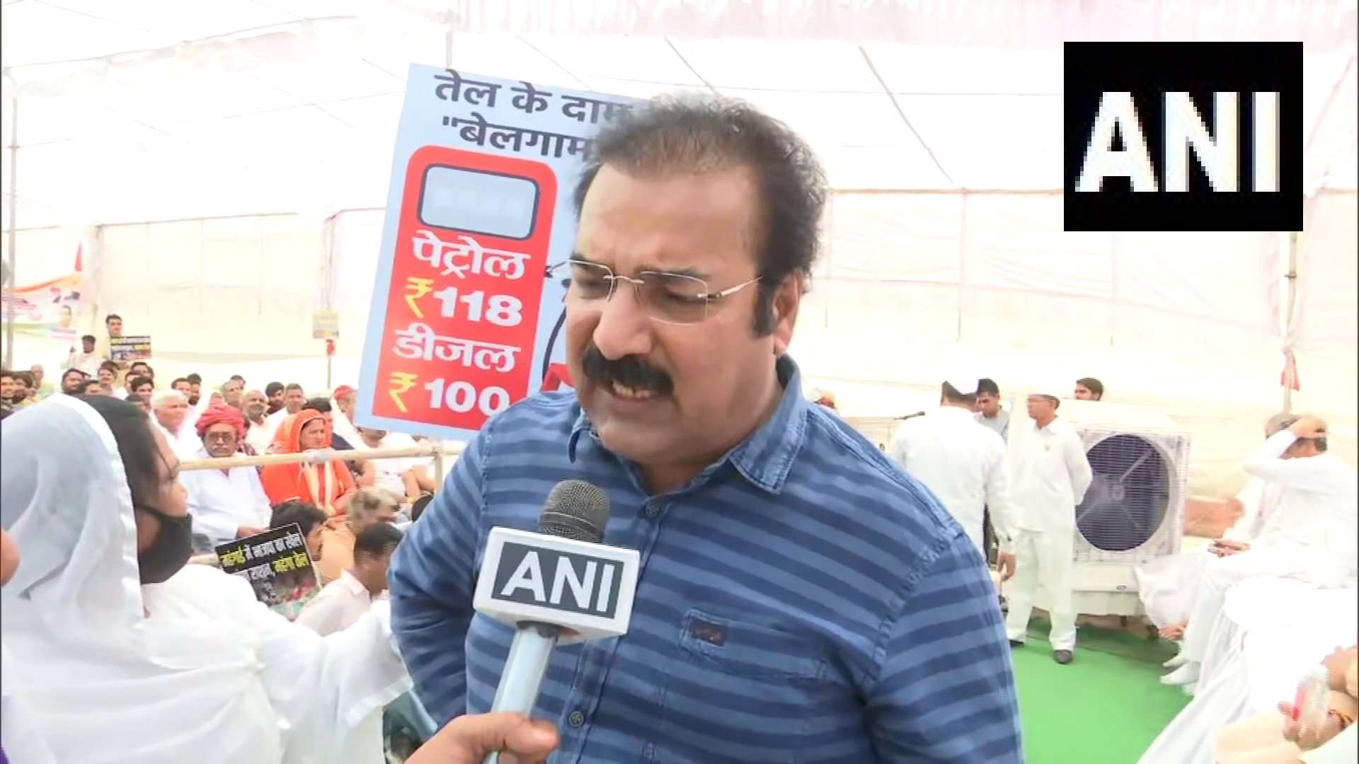 Jaipur (Rajasthan) [India], April 7 (ANI): Holding protest against the rising inflation, Congress on Thursday staged a protest against Central government, in the presence of state cabinet ministers and the Rajasthan Pradesh Congress Committee chief in Jaipur.