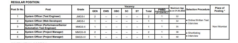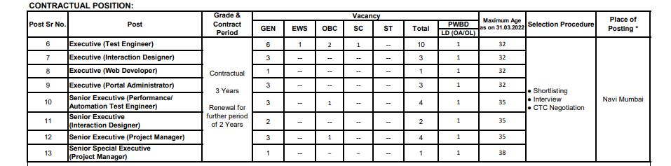 The place of posting for above mentioned vacancies is Navi Mumbai.