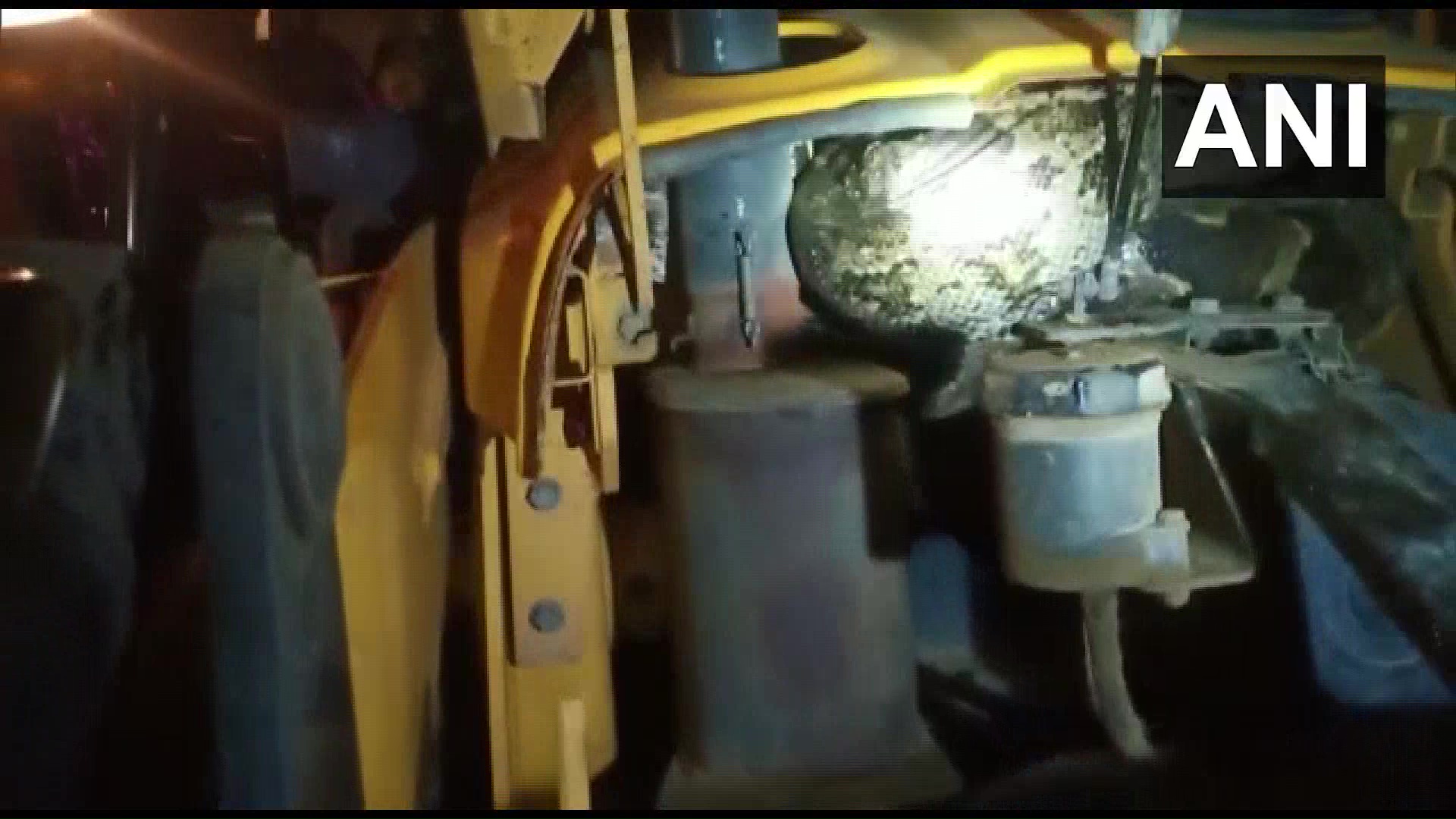 "A team of snake rescuer received a call around 9 pm on Sunday and reached the spot around 9.30 pm. They rescued one python which was on the top of the JCB machine easily. But another snake which was 11-feet long was inside the machine. It took over four hours to rescue it," said Swadhin Kumar Sahu, a snake rescuer. (ANI)