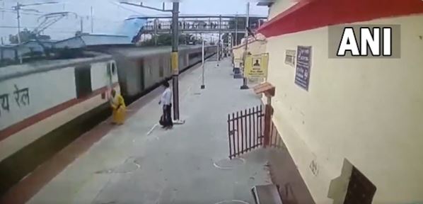 UP: Woman crossing tracks saved just in time by railway official in Firozabad