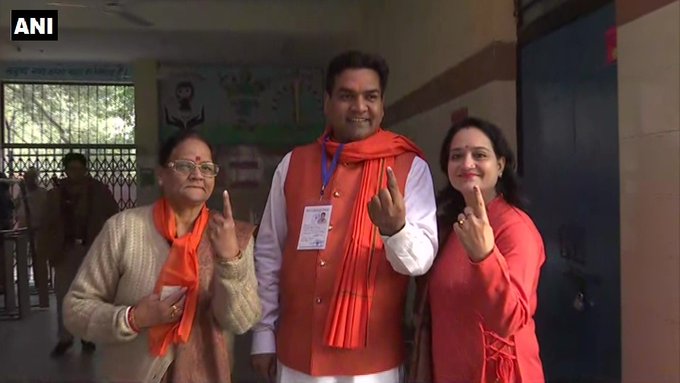 BJP leader Kapil Mishra, who is contesting from Model Town Assembly Constituency, also cast his vote in Yamuna Vihar area. He was accompanied by his wife and mother.