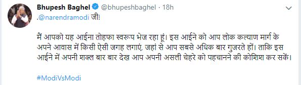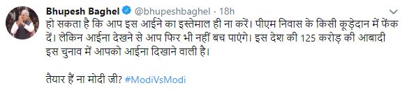 In a tweet in Hindi, Baghel claimed that the people of India will show the mirror to the Prime Minister Modi in the upcoming election.