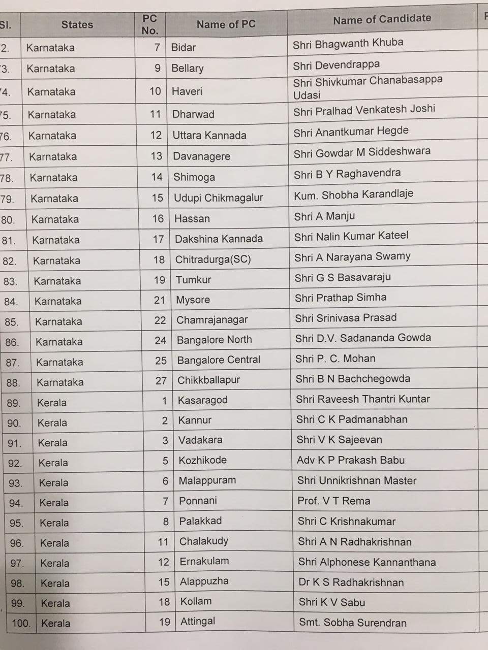 The BJP on Thursday evening released the list of 182 candidates for the ensuing Lok Sabha polls, which start from April 11 in seven phases, concluding on May 19. The counting of votes will take place on May 23.