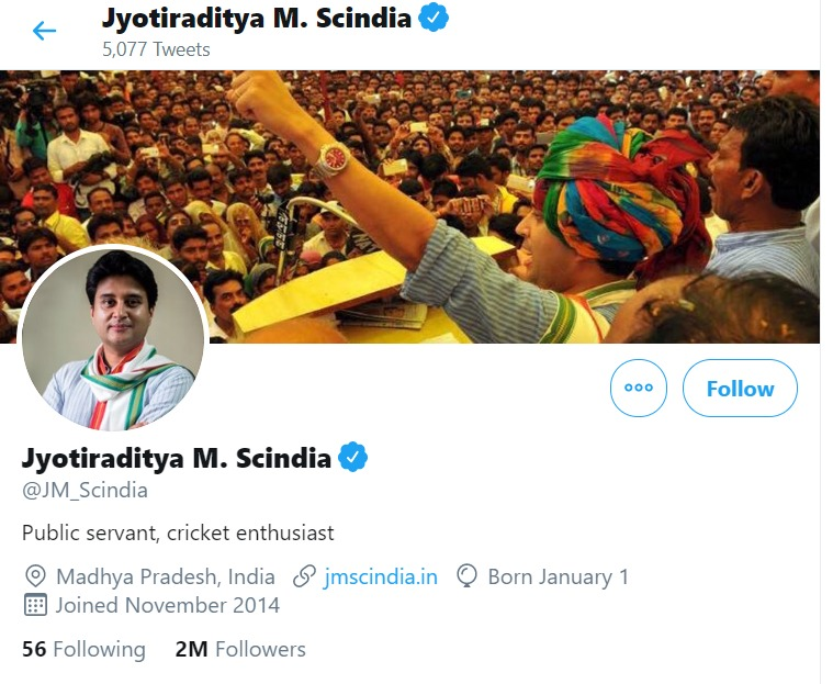 Updated my Twitter bio on people's advice: Scindia refutes rumours of quitting Cong
