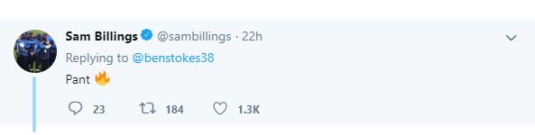 Sam Billings, another England player mentioned the name of Rishabh Pant in his list of favourite young Indian batsmen. Pant was the second highest run-scorer in the last IPL.
