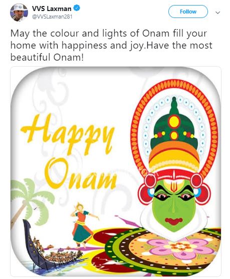 "May the colour and lights of Onam fill your home with happiness and joy. Have the most beautiful Onam!" Laxman tweeted.