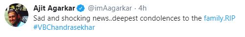 "Sad and shocking news..deepest condolences to the family.RIP" Ajit Agarkar tweeted