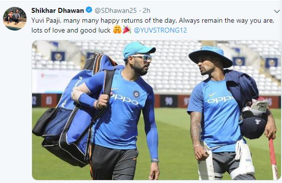 "Yuvi Paaji, many many happy returns of the day. Always remain the way you are, lots of love and good luck @YUVSTRONG12," Shikhar Dhawan tweeted.