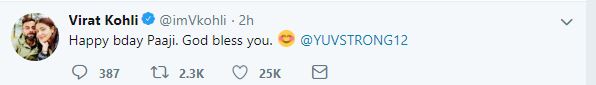 "Happy bday Paaji. God bless you. @YUVSTRONG12," Indian skipper Virat Kohli tweeted.