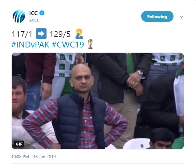 "117/1 -129/5 #INDvPAK #CWC19," ICC tweeted.