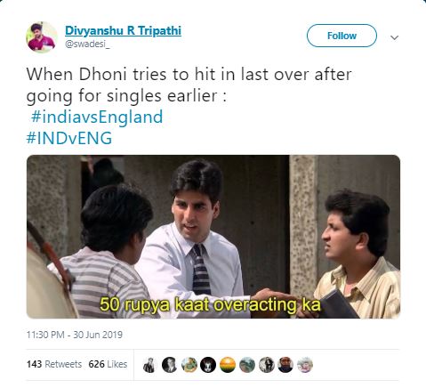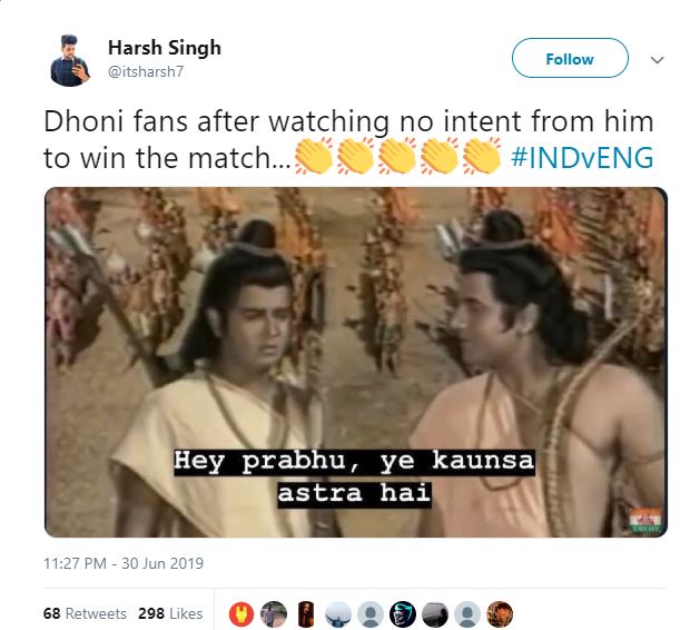 "Dhoni fans after watching no intent from him to win the match #INDvENG," one Twitter user wrote.