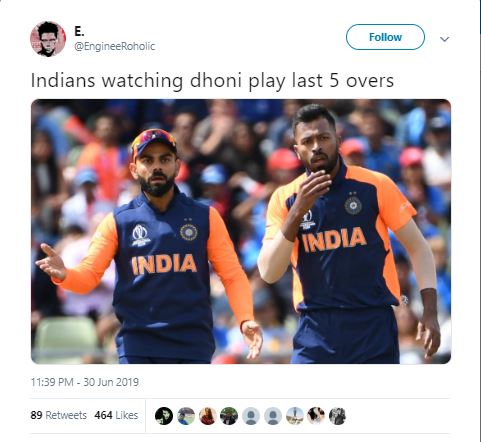 "Indians watching Dhoni play last 5 overs," one Twitter user wrote.