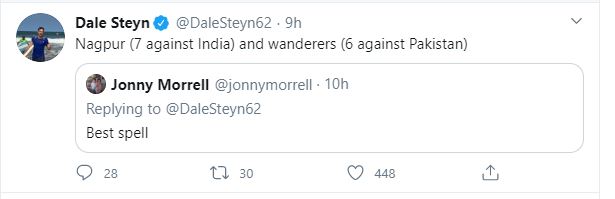Steyn was doing an #AskDale session on Twitter and a fan asked him about his best spells in international cricket.