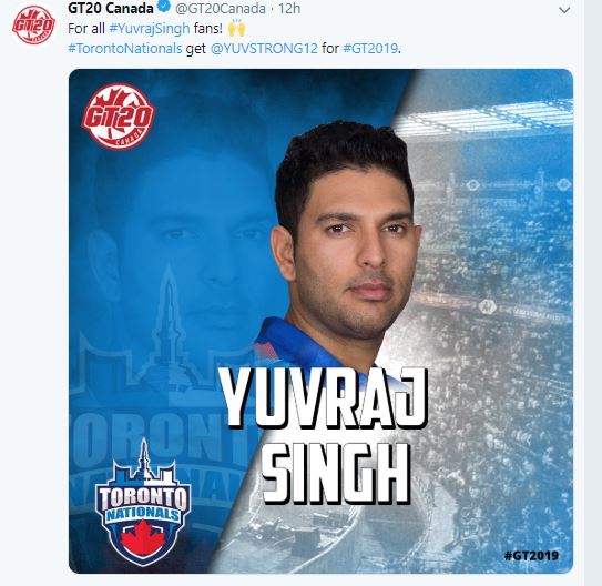 Taking to Twitter he wrote, "Happy to announce that I will be playing for team @MarathaArabians in Abu Dhabi @T10League Be there to cheer for my team and catch me in action at Abu Dhabi from 14 - 24 Nov! Looking forward to it. @parvezkhan35 @sohailkhan @alitumbi #AalaReAala #marathaarabians."On October 24, Maratha Arabians signed Yuvraj as Indian icon player.