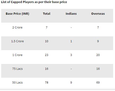 Seven overseas players - Pat Cummins, Josh Hazlewood, Chris Lynn, Mitchell Marsh, Glenn Maxwell, Dale Steyn and Angelo Mathews - have opted to be slotted in the highest bracket (Rs 2 crore).