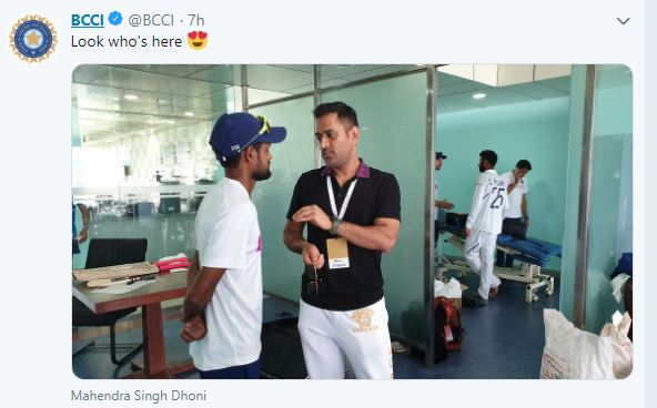 After the win, Dhoni visited the change room to congratulate the entire team for their winning run against the Proteas.